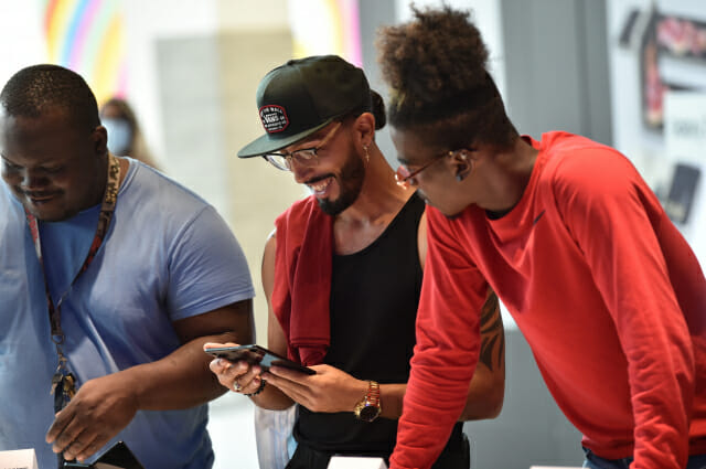 ▲ 미국 뉴욕주 가든시티(Garden City)에 위치한 '삼성 익스피리언스 스토어'에서 갤럭시 Z 폴드3, 갤럭시 Z 플립3를 체험하고 있는 모습. [삼성전자 제공]