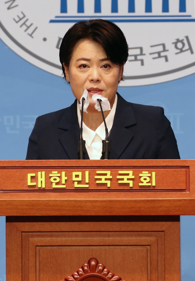 ▲ 국민의힘 윤희숙 의원이 지난 25일 국회 소통관에서 부친의 부동산 매입 의혹과 관련해 의원직 사퇴 의사를 밝히고 있다. [뉴시스]