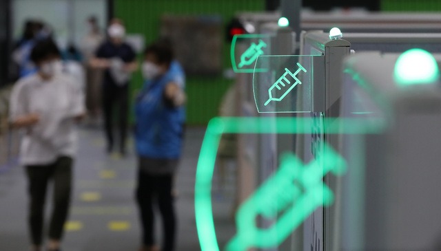 ▲ 18~49세 코로나19 백신 접종 시작 이틀째인 지난 27일 서울 동작구 사당종합체육관 코로나19 예방접종센터에서 대상자들이 접종실로 향하고 있다. [뉴시스]
