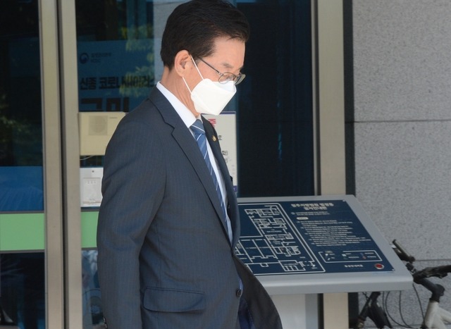 ▲ 더불어민주당 정정순(63·청주시 상당구) 의원이 지난 20일 충북 청주시 서원구 산남동 청주지방법원에서 열린 1심 선고 공판이 끝난 뒤 법원을 빠져나가고 있다. [뉴시스]
