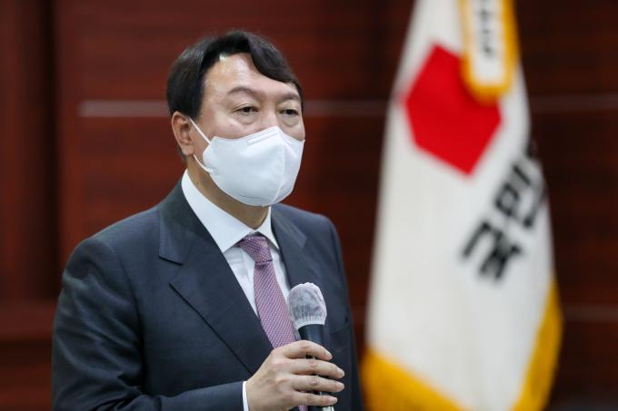 ▲ 국민의힘 대권주자 윤석열 전 검찰총장이 30일 충남 천안시 동남구 충남도당 사무실을 방문해 인사말을 하고 있다. [윤석열 전 총장 캠프 제공]