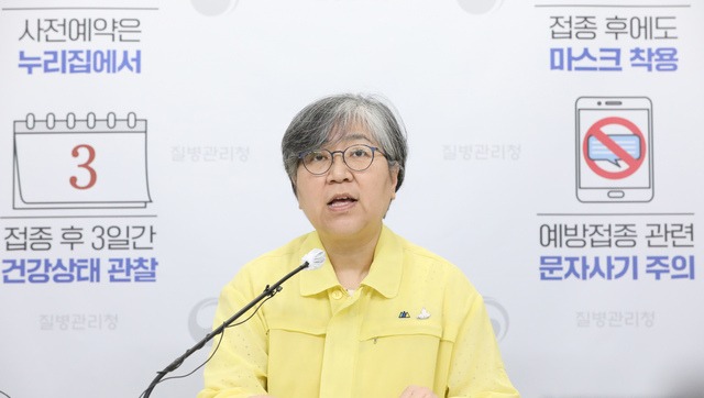 ▲ 정은경 질병관리청장이 26일 충북 청주 질병관리청에서 코로나19 예방접종 현황 등을 발표하고 있다. [뉴시스]