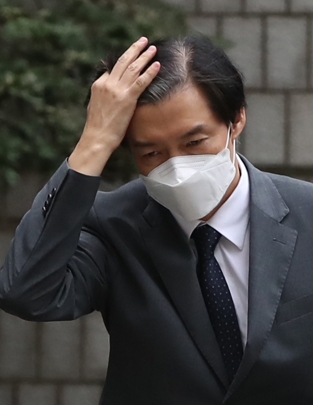 ▲ 조국 전 법무부 장관이 지난달 27일 자녀 입시비리와 뇌물수수 혐의 공판에 출석하기 위해 서울 서초구 서울중앙지방법원으로 들어서고 있다. [뉴시스]