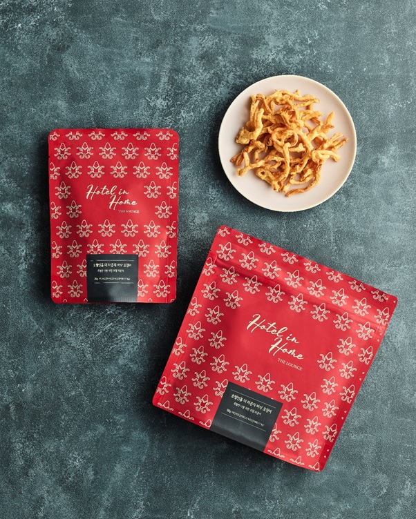 호텔인홈에 따르면 '더 라운지 바삭 오징어'는 카놀라유와 옥수수유 황금비율로 특수제작공법 기술을 적용해 만든다. HACCP 인증 생산시설에서 위생적으로 만들어 안심하고 먹을 수 있는 먹거리라는 설명이다. 진미채 100%에는 방부제가 없는 튀김옷을 입힌다.