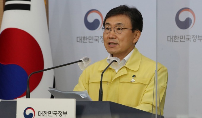 ▲ 권덕철 중앙재난안전대책본부 1차장(보건복지부 장관)이 3일 오전 서울 종로구 정부서울청사 별관 합동브리핑룸에서 다음 주부터 4주간 적용할 방역 대책을 발표하고 있다. [뉴시스]