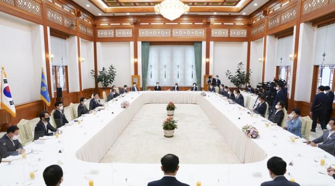 오찬 참석자들은 언론중재법 및 가짜뉴스 근절, 글로벌 백신허브 구축, 종전선언 필요성 등 다양한 주제로 대화했다고 청와대 박경미 대변인은 전했다.
