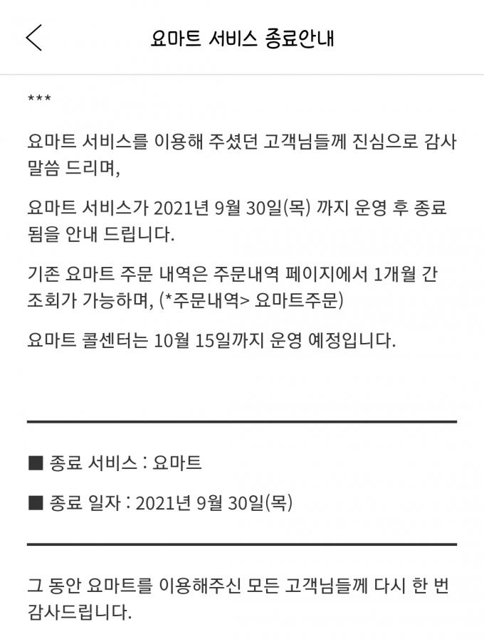 딜리버리히어로코리아 관계자는 "요마트는 공지대로 이달 말 종료될 예정이며, 매각 이후 DH와 DHSK의 별도 운영 상태로 구체적인 사항에 대해 확인할 수 없다"고 말했다.