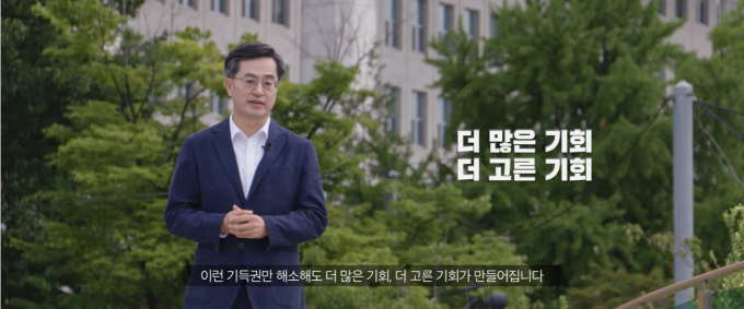 그는 이날 오전 유튜브 채널 '김동연TV'를 통해 "대한민국의 미래를 열기 위해 기득권 세력이 디지털 미래세대의 길을 가로막는 승자독식 구조를 깨야 한다"며 출마의 변을 밝혔다.