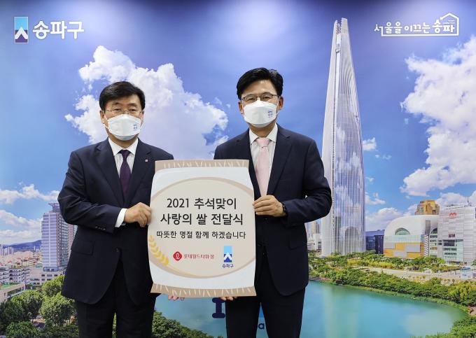롯데월드타워가 추석 명절을 맞아 서울 송파구 돌봄 이웃 800세대를 위한 2500만 원 상당의 쌀(백미 10kg, 800포)을 전달했다. 롯데월드타워는 2015년부터 7년째 매년 명절마다 송파구 관내 총 1만5000세대 이웃에게 지속적인 나눔을 이어오고 있다.