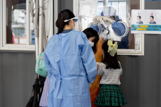 ▲ 지난 8일 서울 중구 임시선별검사소에서 어린이가 검사를 받고 있다. [문재원 기자]