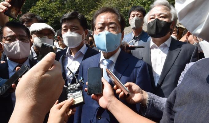 홍 의원은 이날 경북 구미의 박정희 전 대통령 생가를 찾았다. 그는 기자들과 만나 고발 사주 의혹에 대해 "더불어민주당이 우리당을 공범으로 엮으려고 짜는 프레임에 넘어가면 바보같은 짓"이라고 주장했다. "제 문제도, 당 문제도 아닌 후보 개인(윤 전 총장) 문제에 당이 나서는 것은 옳지 않다"고도 했다. 당 지도부를 향해 의혹 대처에서 손을 떼라고 주문한 것이다.