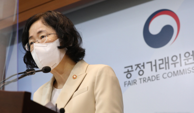 ▲ 조성욱 공정거래위원회 위원장이 14일 오전 정부세종청사에서 구글에 시정 명령과 과징금 2074억 원(잠정)을 부과한다고 밝히고 있다. [뉴시스]