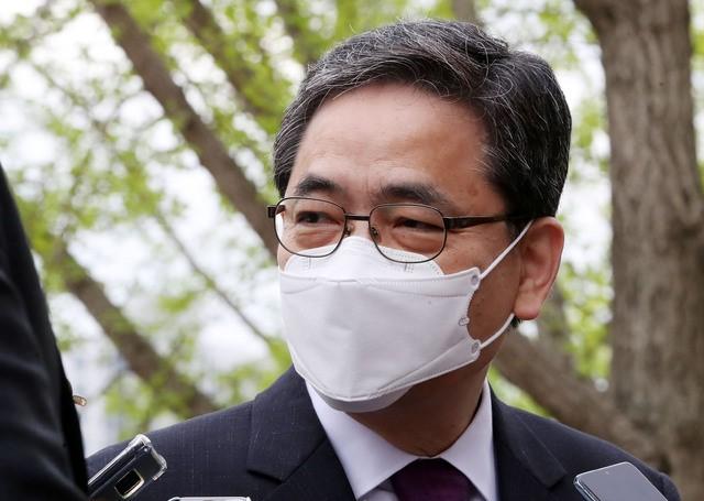 ▲ 국민의힘 곽상도 의원이 지난 4월 23일 경기도 과천정부청사에 있는 공수처를 항의방문하며 취재진의 질문에 답하고 있다. [뉴시스]
