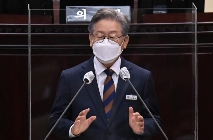 ▲ 더불어민주당 대선 경선후보인 이재명 경기지사가 지난 15일 경기도 수원시 경기도의회에서 열린 제354회 임시회 제4차 본회의에 출석해 인사말을 하고 있다. [뉴시스]