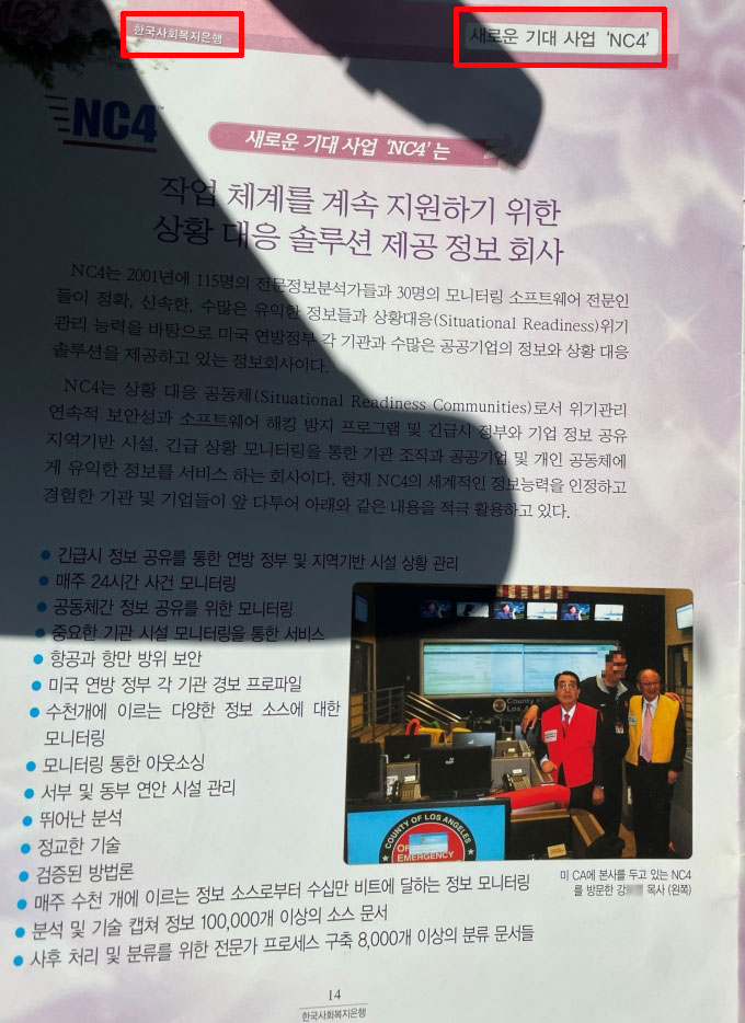 ▲ 한국사회복지뱅크(기독교은행) 소개 책자에 실린 NC4 설명 자료. [송창섭 기자]