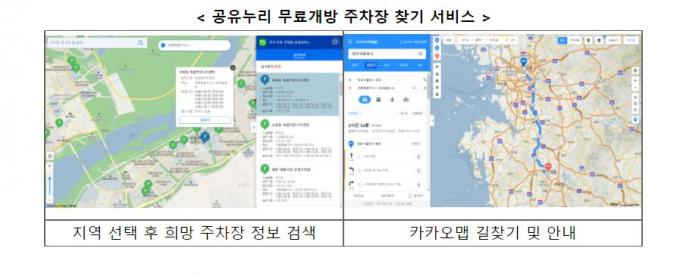 행정안전부에 따르면 오는 22일 추석연휴 마지막 날까지 공공주차장 정보를 공공자원 플랫폼인 '공유누리'(www.eshare.go.kr)와 '공공데이터포털'(www.data.go.kr)에서 확인할 수 있다.