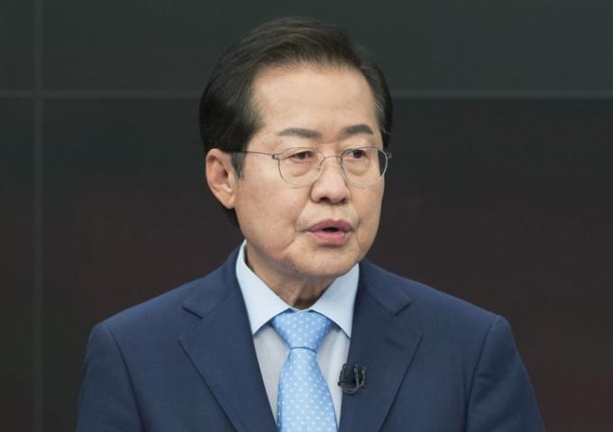 ▲ 국민의힘 대권주자 홍준표 의원이 지난 16일 서울 중구 TV조선 스튜디오에서 열린 방송토론회에서 토론 준비를 하고 있다. [뉴시스]