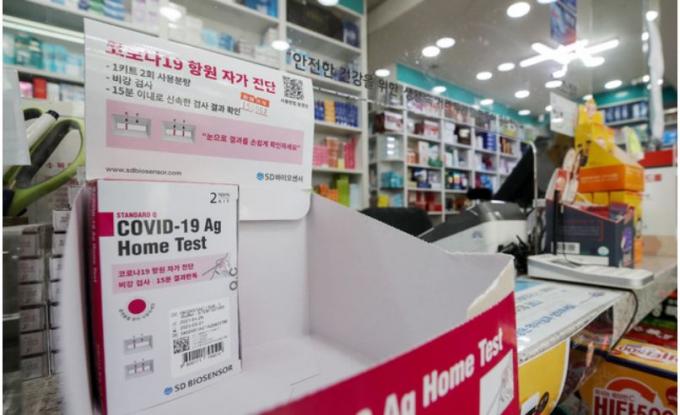 ▲ 국번없이 110번을 누르면 추석연휴에도 문을 연 약국을 찾을 수 있다. 사진은 코로나19 자가검사 키트가 진열돼 있는 서울 시내 한 약국 모습. [뉴시스]