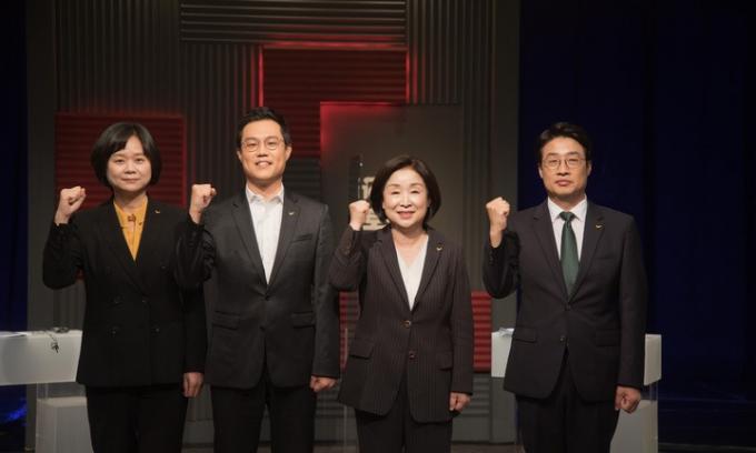 김·황 후보는 심·이 후보를 싸잡아 비판했다. 정의당의 현 상황을 언급하면서다. 김 후보는 "정의당이 사회 변화를 주도할 기회와 힘을 심 후보가 줄 수 있는지 의문 부호가 찍힐 수밖에 없다"며 "국민의 눈엔 두 후보가 비슷한 모습으로 보일 것"이라고 꼬집었다.