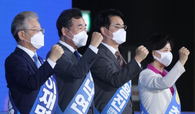 1·2위 20만표차…과반기준 매직넘버 17만표 남아 더불어민주당 대선후보가 이재명 경기지사로 거의 굳어졌다.