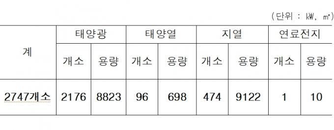 이를 통해 내년에 일반주택과 공공시설 등 총2747개소에 태양광(8,823㎾), 태양열(698㎡), 지열(9,122㎾) 등의 설비가 보급된다. 도는 연간 약 1만1593㎿h의 전력생산 효과와 난방유 대체 사용 등을 통한 이산화탄소(온실가스) 감축 효과를 기대하고 있다.