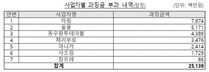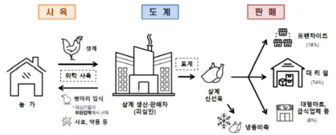 이들 7개사는 삼계 사육을 농가에 위탁해, 병아리·사료 등을 제공한 후 다 자란 삼계 닭을 공급받아 도축해 판매하는 사업자다. 농가는 그 대가로 사육·공급한 물량에 따라 정해진 수수료를 지급받았다.