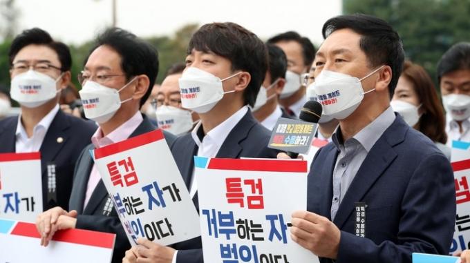 국민의힘 김기현 원내대표는 이날 국정감사 대책회의에서 유씨 금품 수수 의혹에 대해 "이 돈이 어떤 세탁 과정을 통해 누구의 손에 들어갔을지 여부는 뻔하지 않나"라고 말했다.