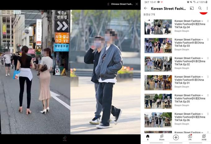 누리꾼은 "예전에 중국 연예인에 관심이 있어서 더우인을 깔아 사용해왔다"며 "그런데 한국 길거리를 다니면서 한국인들 패션을 대놓고 찍어서 올리는 영상들을 발견했다. 음침하다고 생각해 더우인을 지우려다가 공론화시키려고 올려본다"고 했다.