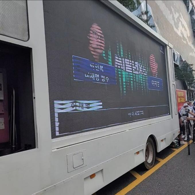 이날 오후 경선이 열리는 수원시 수원컨벤션센터 앞 도로에서 한 보수단체 유튜버가 대형 전광판을 설치한 트럭을 통해 이 지사의 '형수 욕설' 영상을 틀었다. 이 유튜버는 동영상이 나오는 동안 트럭 위로 올라가 "화천대유 특검하라"를 연달아 외쳤다.