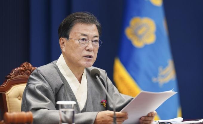 문 대통령은 이날 "대장동 사건에 대해 검찰과 경찰은 적극 협력해 신속하고 철저한 수사로 실체적 진실을 조속히 규명하는 데 총력을 기울여 달라"고 말했다고 청와대 박경미 대변인이 전했다. 더불어민주당 대선후보인 이재명 경기지사가 연루된 의심을 받는 대장동 의혹에 대해 문 대통령이 직접 입장을 밝힌 건 이번이 처음이다.