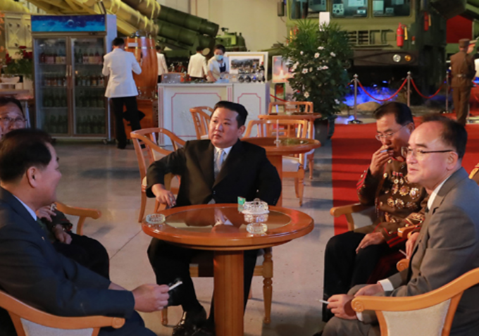 참관 사진 중에는 김 위원장이 조용원 정치국 상무위원 등과 휴식 중에 재떨이를 앞에 두고 함께 담배를 피우는 모습도 눈에 띄었다.