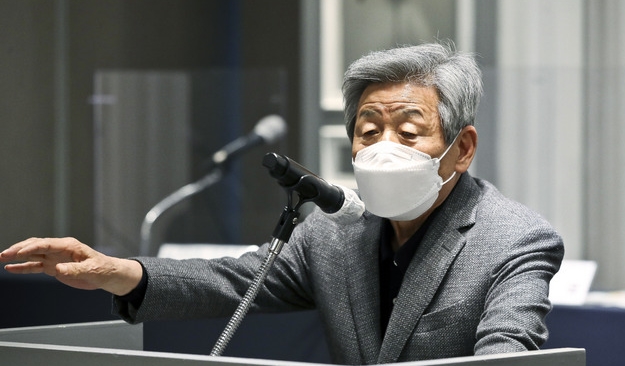 ▲유인태 전 국회 사무총장이 지난 5월 10일 서울 여의도 켄싱턴호텔에서 열린 '재전환의 시대, 새로운 정치의 모색' 정치 개혁 토론회에서 축사를 하고 있다. [뉴시스]