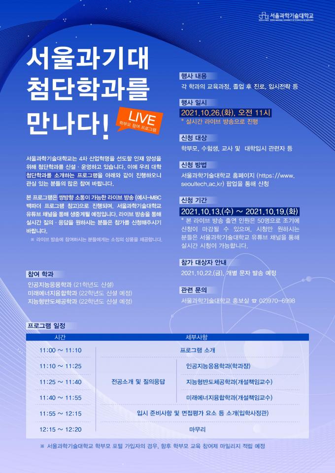 ▲ 서울과기대 쌍방향 입시설명 생중계 포스터. [서울과기대 제공]