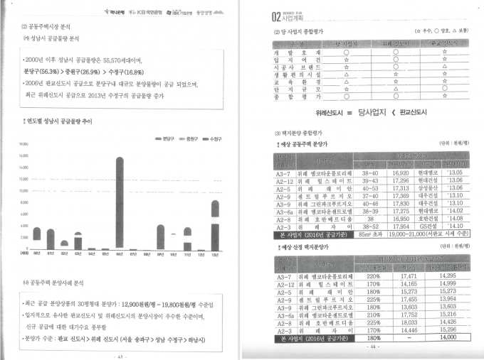 이어 "종합평가면에도 '대장동 사업지는 개발 호재이며 입지여건이 우수하다'고 분석했다"며 "계획서 상 주변 입지의 미분양 현황이나 부정적인 부동산 경기 예고 등은 찾아볼 수 없었다"고 말했다.