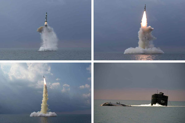 ▲ 조선중앙통신과 노동신문은 "조선민주주의인민공화국 국방과학원은 19일 신형 잠수함발사탄도탄 시험발사를 진행했다"고 20일 사진과 함께 보도했다. [노동신문 캡처]