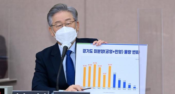▲ 더불어민주당 대선후보인 이재명 경기지사가 20일 경기도청에서 열린 2021년 국회 국토교통위의 경기도 국정감사에서 의원 질의에 답하고 있다. [뉴시스]