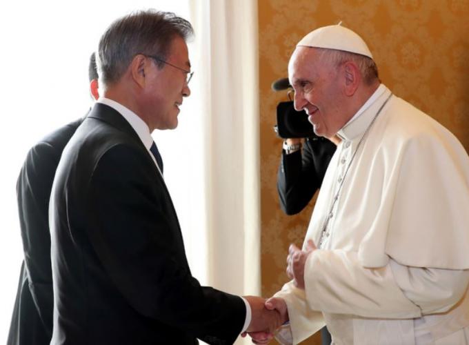 청와대는 이달 말 예정된 문재인 대통령과 프란치스코 교황 면담에서 교황의 방북 논의가 이뤄질 수 있다고 밝혔다. 청와대 관계자는 25일 "문 대통령이 오는 29일 유럽 순방 첫 일정으로 교황청을 공식 방문해 프란치스코 교황, 파롤린 교황청 국무원장 등과 각각 면담할 예정"이라고 말했다.