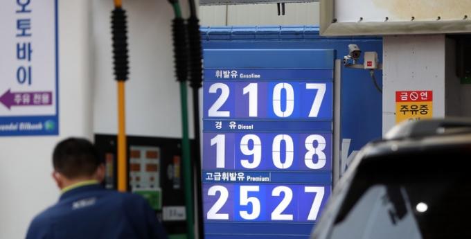 ▲전국 휘발유 평균 가격이 7년 만에 1700원을 넘어섰다. 지난 19일 서울 시내 한 주유소 가격 안내판에는 휘발유 가격이 2107원을 나타내고 있다. [뉴시스]