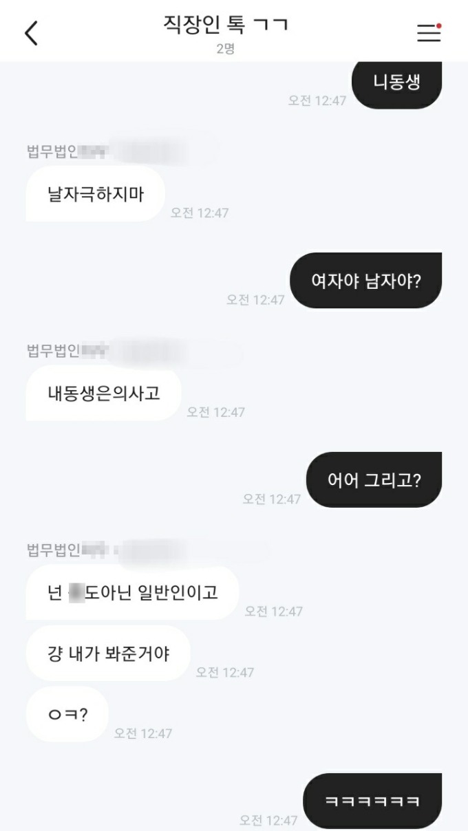 20대 여성 직장인 A는 직장인 커뮤니티 블라인드 '직장인 톡 ㄱㄱ' 채팅방에 접속했다가 황당한 일을 겪었다. 자신을 대형 로펌 변호사라고 소개한 남성과 대화 중에 욕설 섞인 폭언을 들은 것이다.
