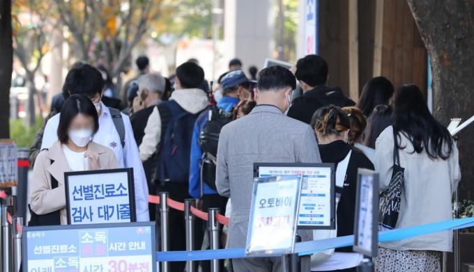 ▲ 28일 오후 서울 송파구 보건소 선별진료소에서 시민들이 코로나19 검사를 받기 위해 대기하고 있다. [뉴시스]
