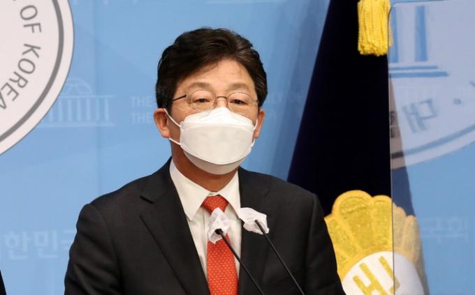 ▲국민의힘 유승민 대선 경선후보가 29일 오전 서울 여의도 국회 소통관에서 홍준표 후보와의 단일화 가능성을 일축하며 지지를 호소하는 기자회견을 하고 있다. [뉴시스]