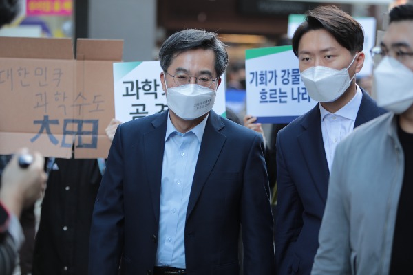 김 전 부총리는 또 "정치권 진입 장벽이 높다"며 최근 있었던 기자회견 해프닝을 언급했다. 그는 지난 26일 1호 공약을 발표하기 위해 국회 소통관 기자회견장을 찾았지만, 원내 정당 소속이 아니라는 이유로 출입을 제지당해 소통관 밖 백브리핑장에서 회견을 진행했다.