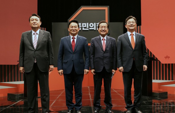 이날 토론은 서울 상암동 채널A 스튜디오에서 1, 2부로 나누어 100분간 진행됐다. 1부에서는 윤, 원 후보가 2부에서는 유승민, 홍준표 후보가 맞붙었다. 김승련 채널A 에디터가 사회를 맡았다.