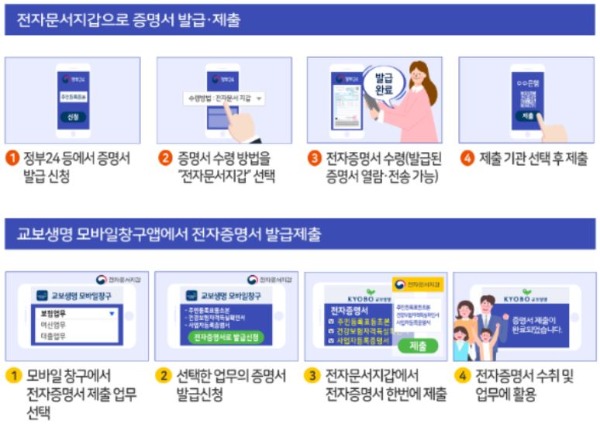 지난 25일부터 교보생명 모바일창구 애플리케이션(앱)을 통해 보험·금융업무 등에 필요한 주민등록표등본 등 13종의 전자증명서를 발급받고 제출하는 것이 가능해졌다.