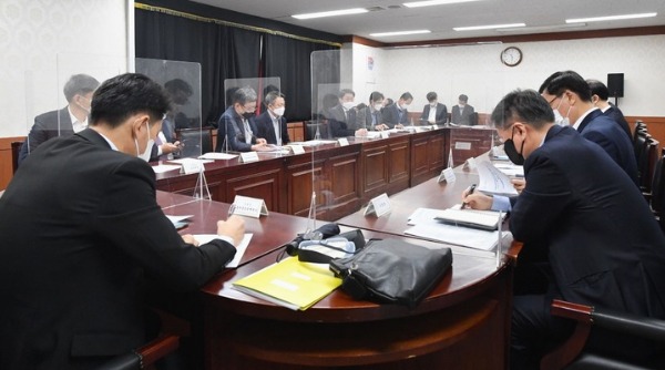 ▲8일 이억원 기획재정부 차관이 서울 종로구 정부서울청사에서 '요소수 수급 관련 범부처 합동 대응회의'를 주재하고 있다. [기획재정부 제공]