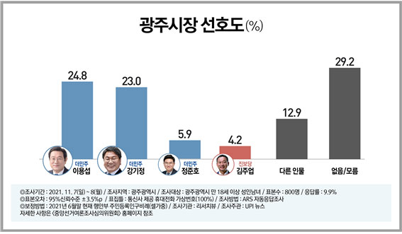 차기 광주시장…이용섭 24.8% vs 강기정 23.0% 팽팽