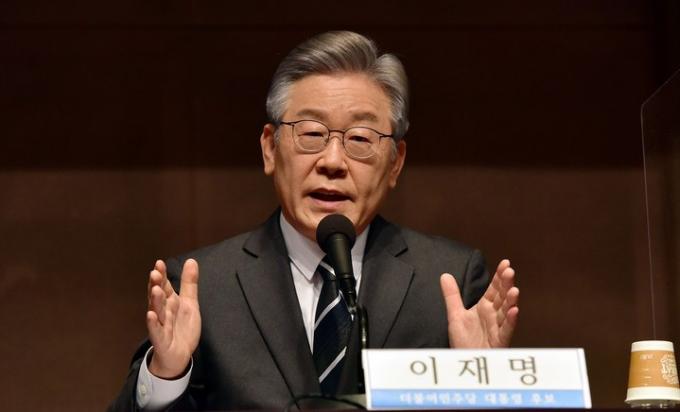 ▲더불어민주당 이재명 대선후보가 10일 서울 중구 프레스센터에서 열린 관훈토론회에서 패널 질문에 답변하고 있다. [뉴시스]