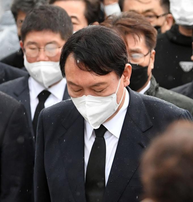 윤 후보는 이날 5·18 민주묘지에서 약 30초 간 묵념한 뒤 준비한 입장문을 꺼내 읽었다. 그는 "40여년 전 오월 광주 시민들이 대한민국 민주주의를 위해 피와 눈물로 희생한 것을 똑똑히 기억하고 있다"며 '전두환 옹호' 발언에 대해 사과했다.