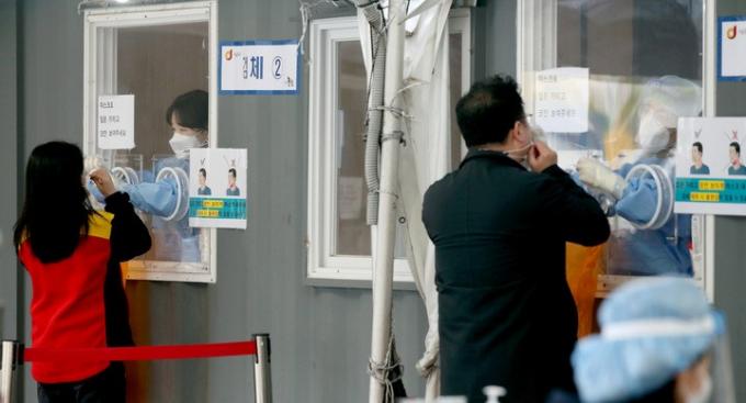 ▲시민들이 10일 오전 서울 중구 서울역에 마련된 임시선별검사소에서 코로나19 검사를 받고 있다. [뉴시스]