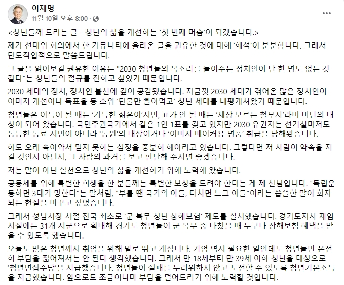 이대남(20대 남자), 이대녀(20대 여자)에 대한 차별적 공략 전략도 도마에 올랐다. 이 후보는 11일 페이스북에 '광기의 페미니즘을 멈춰야 한다'는 주장을 담은 온라인 커뮤니티 글을 올려 논란을 불렀다.